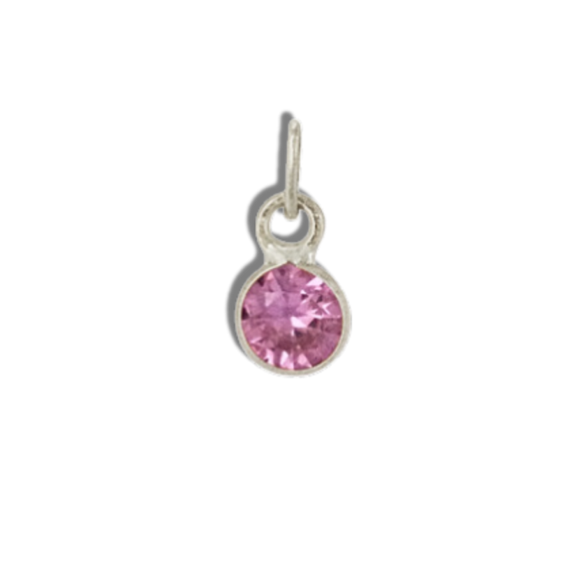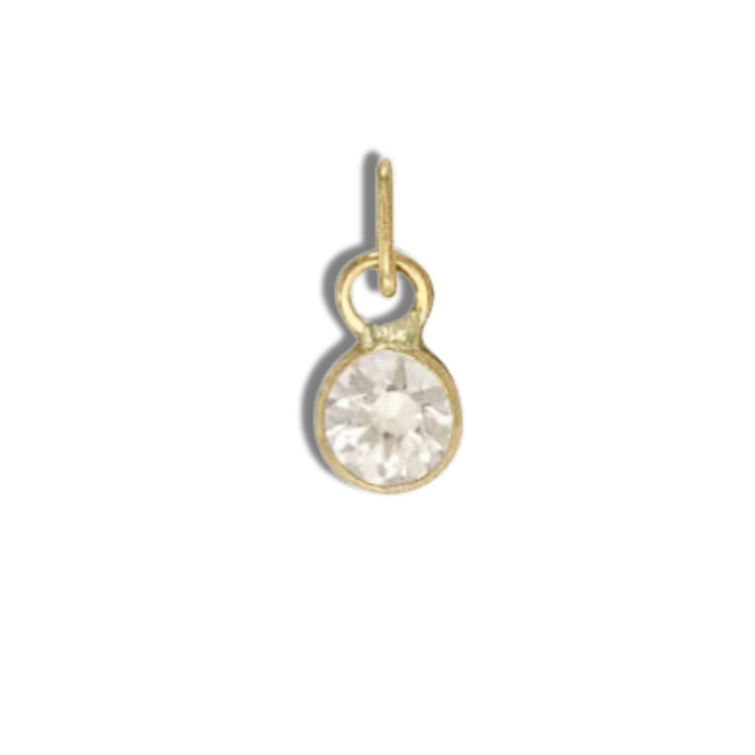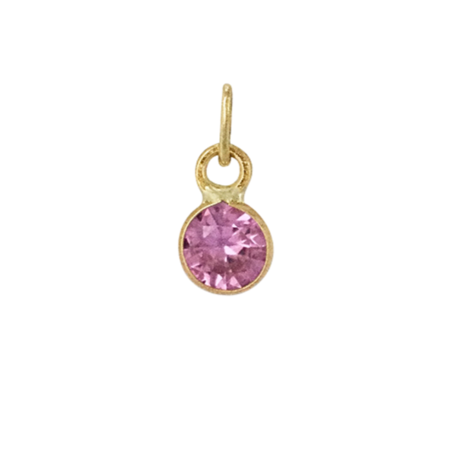 Our gemstone charms are natural mined gemstones set in 14k gold.
